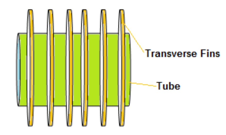 Transverse fins are normally used for gas flows or turbulent flows and for cross flow type exchangers or shell and tube heat exchangers. For air coolers, tubes with transverse fins are best suited.
